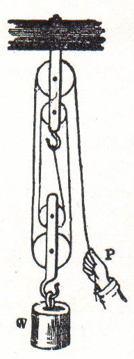 Block and Tackle. There are lots of variants on block and tackle. These illustrations show a simple block and tackle, and a more complex one for lifting heavy loads.