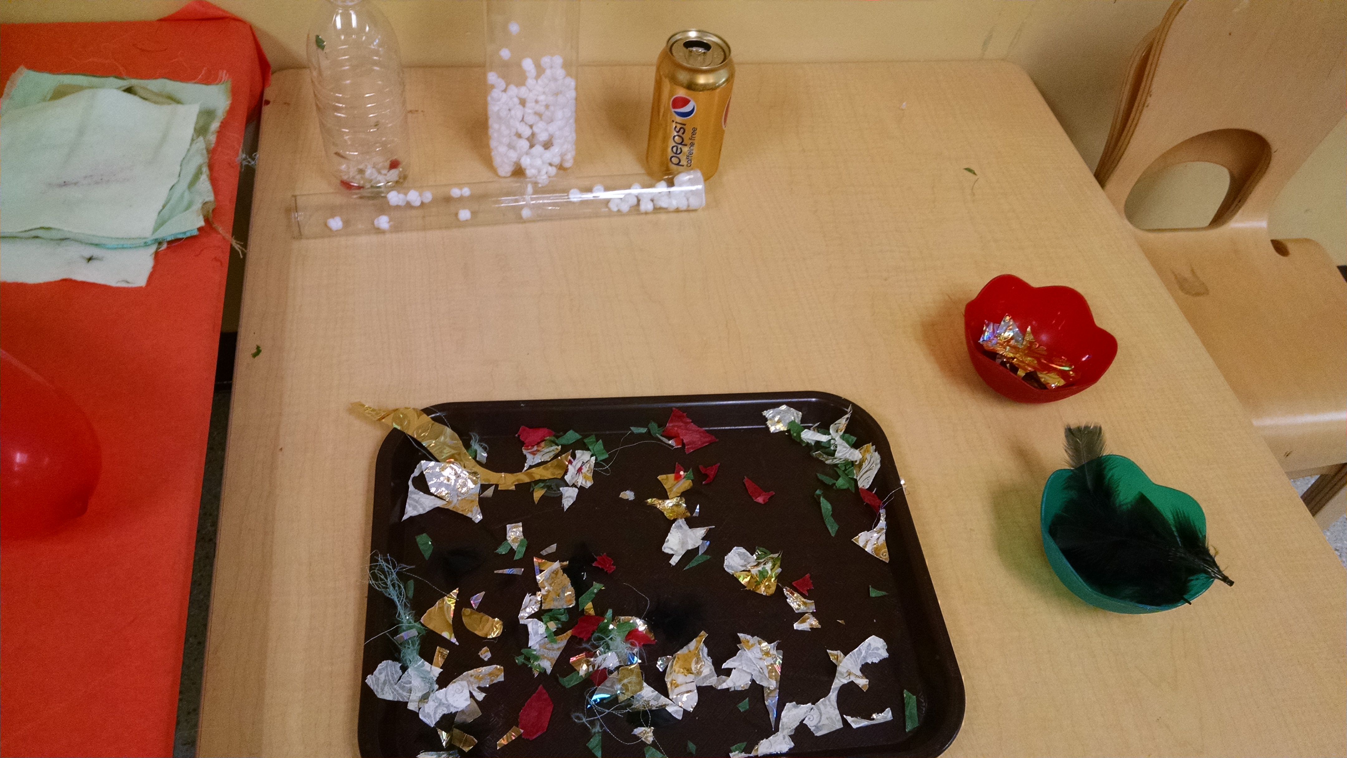 For our class, I found a battered Easter chick at Goodwill, and I ordered this Tedco Sensor Ball which flashes and makes noise. (This Energy Stick looks like a great option, plus if you look at that item on Amazon, it suggests several other related products.)