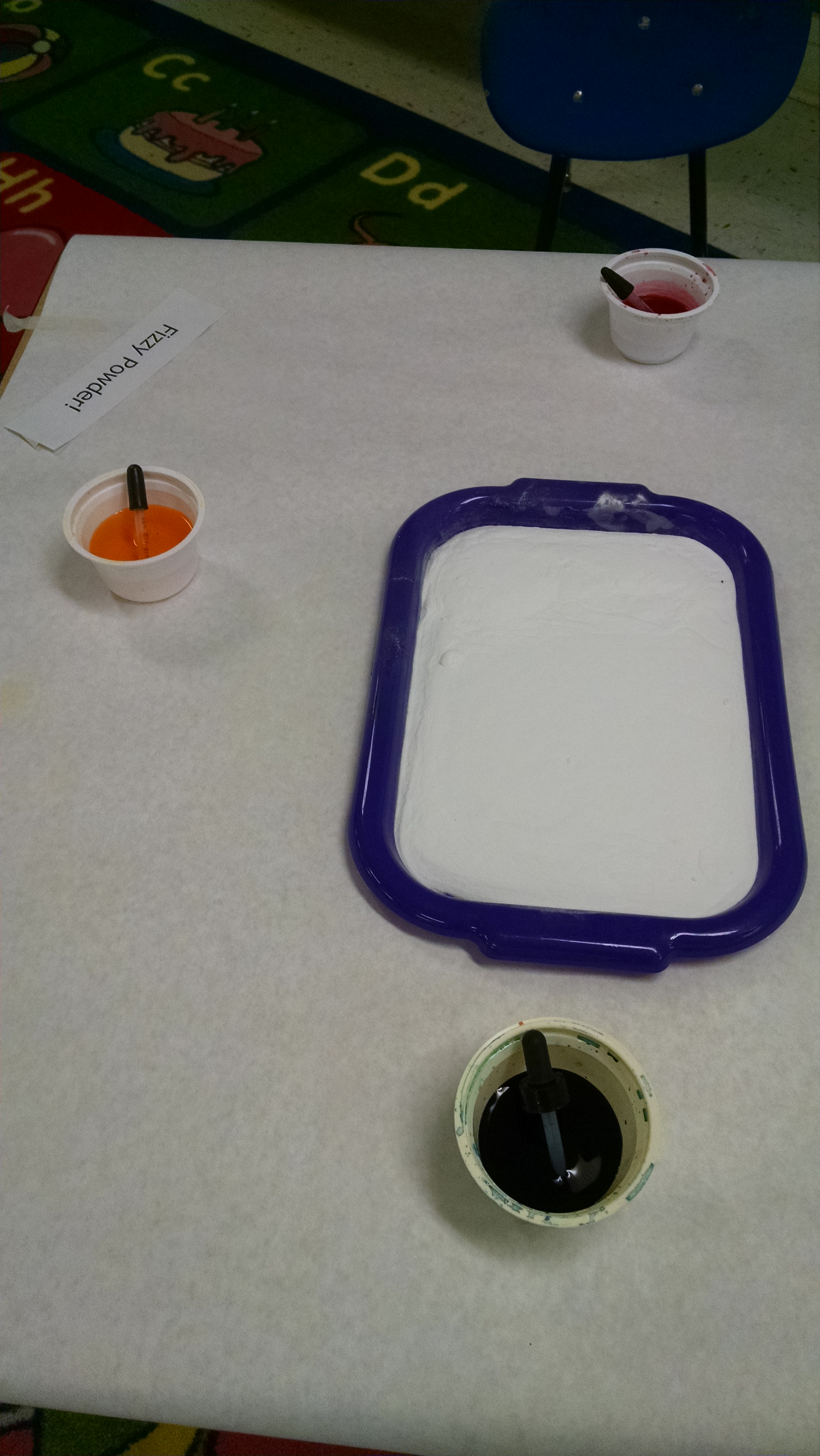 Discovery Time: For the first 25 minutes of class, we wanted them to experience reactions, before we explained them in opening circle. So, we started with some hands-on fun. (For a bigger version of any of the images, just click on it for a closer look.)