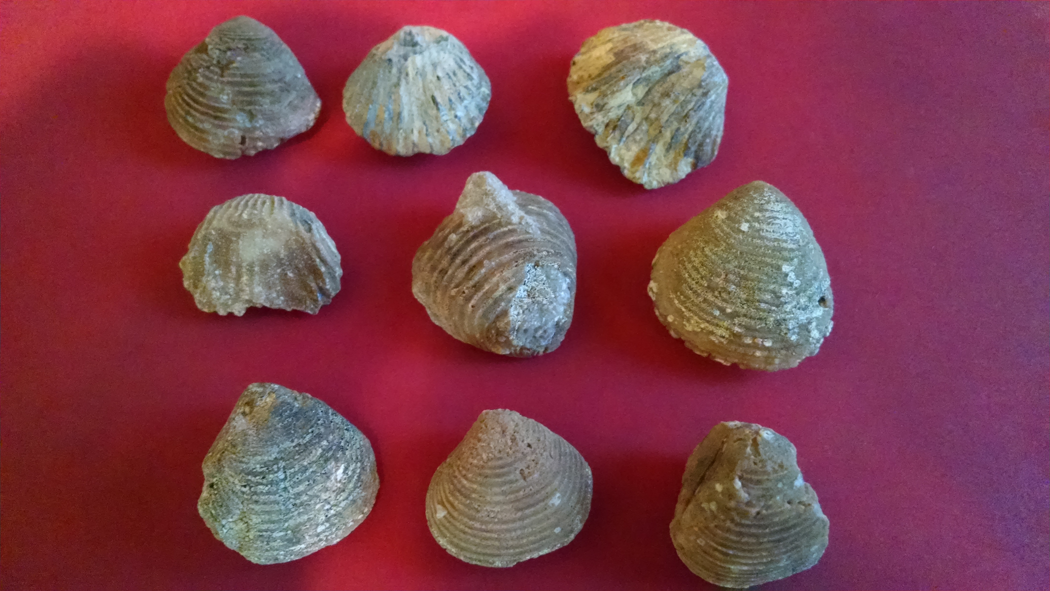 They were a little dusty (as would be expected), and I wanted good photos, so I gave them a quick scrub with a veggie brush, and a solution that was one part vinegar, 10 parts water, then rinsed. Here they are after cleaning…. there’s about 95 fossils.
