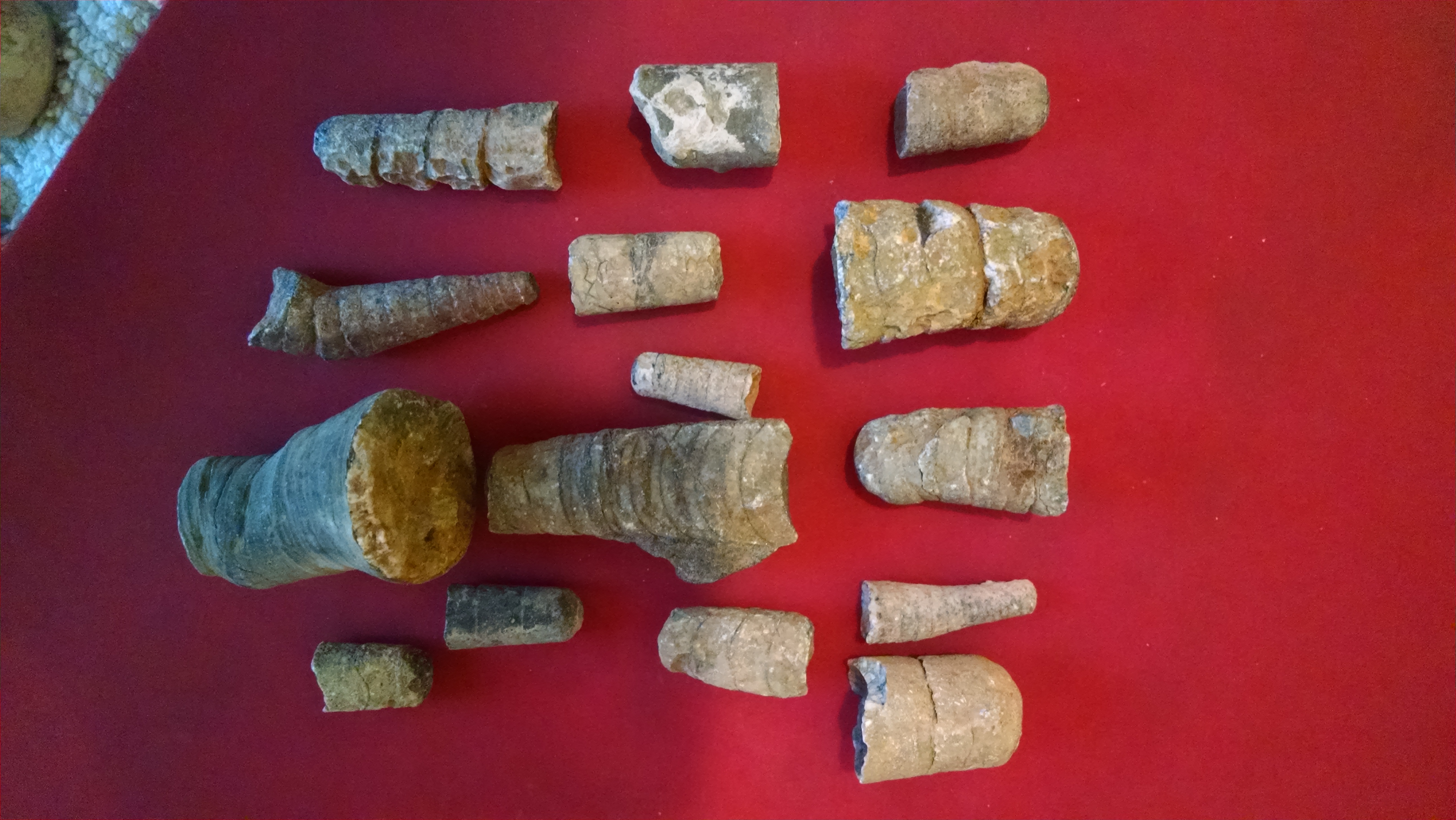 The kit included an identification guide. You can see it at https://s3.amazonaws.com/cdn.teachersource.com/downloads/lesson_pdf/FSL-800.pdf. Based on it, the kit included about: 9 brachiopods, 4 rocks with fossil fragments, 10 gastropods, 13 snails, 9 ammonites, 15 orthoceras, 20 crinoid stems, 12 pieces of coral. There weren’t any trilobites.