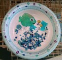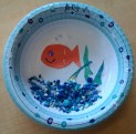 Make a fish habitat: We had paper “fish bowls,” aquarium rocks, blue paper squares and foil for water, some plants, and fish from shiny origami paper.