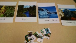 Habitat Match. I wanted a game where the kids took pictures of animals and sorted them into their habitats. The Wise Owl Factory has two really nice options, one with cute animal drawings and one with photographs. Preschool activities also has a good alternative.
