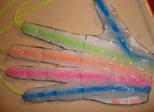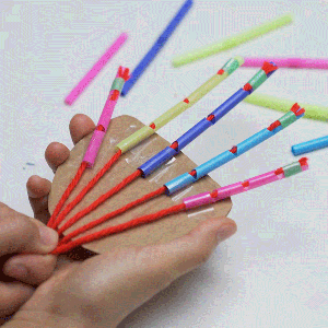 Weird Science Kids uses a hand-shaped cardboard, bendy straws and string, and “glues” the straws down to the cardboard with clear silicone caulk (like you use to seal seams in a shower.) It looks complicated to me… and takes a couple days as you have to wait for the caulk to dry / cure.