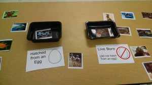 I created a PDF with photos taken from the ZooBorns website (I do not have copyright to these images) and printed them so on the back of each picture, there was either an egg, or an egg with a circle/slash through it. Sort them into two piles – “Hatched from an Egg” and “Live Born (did not hatch from an egg)”.