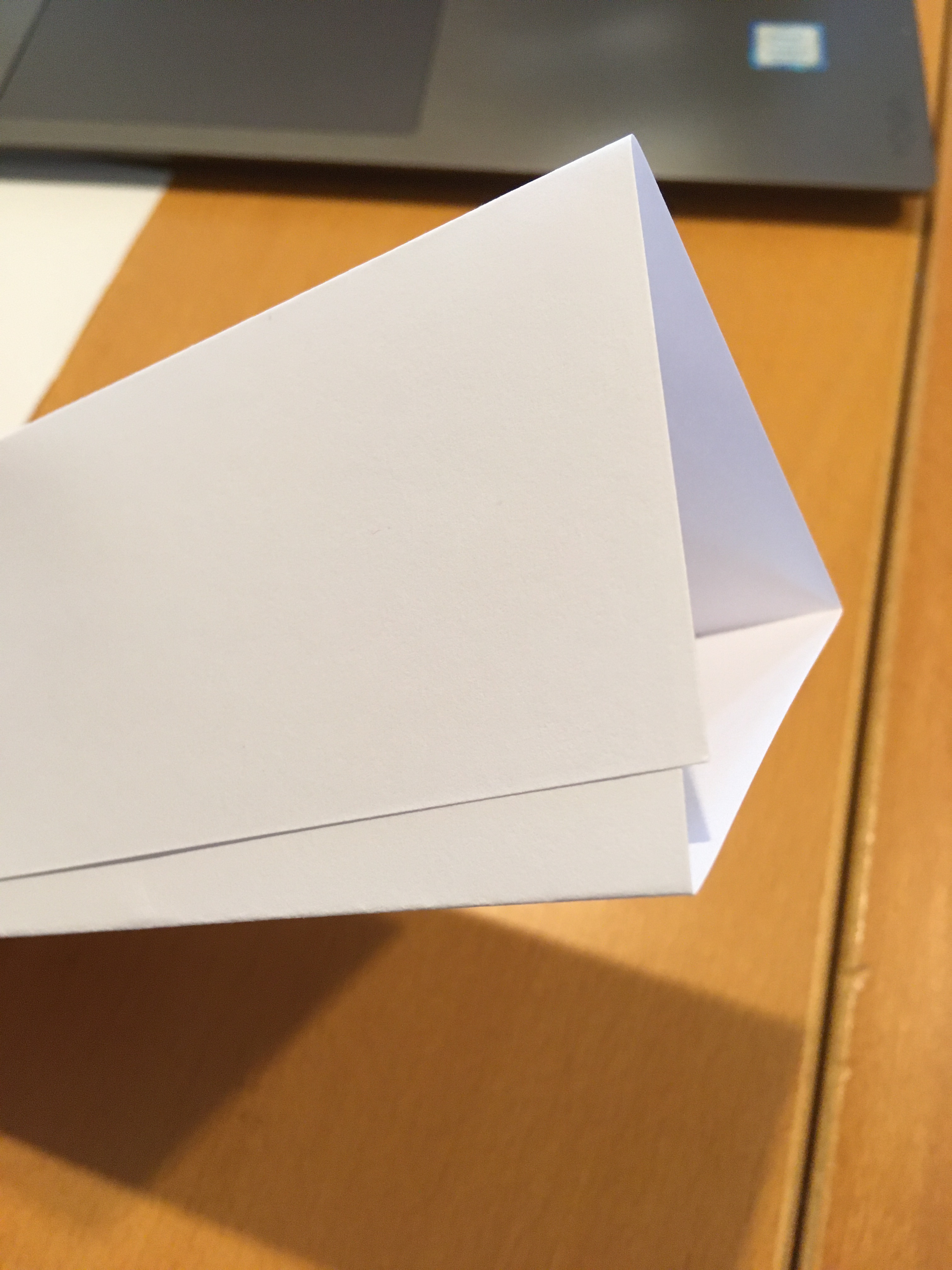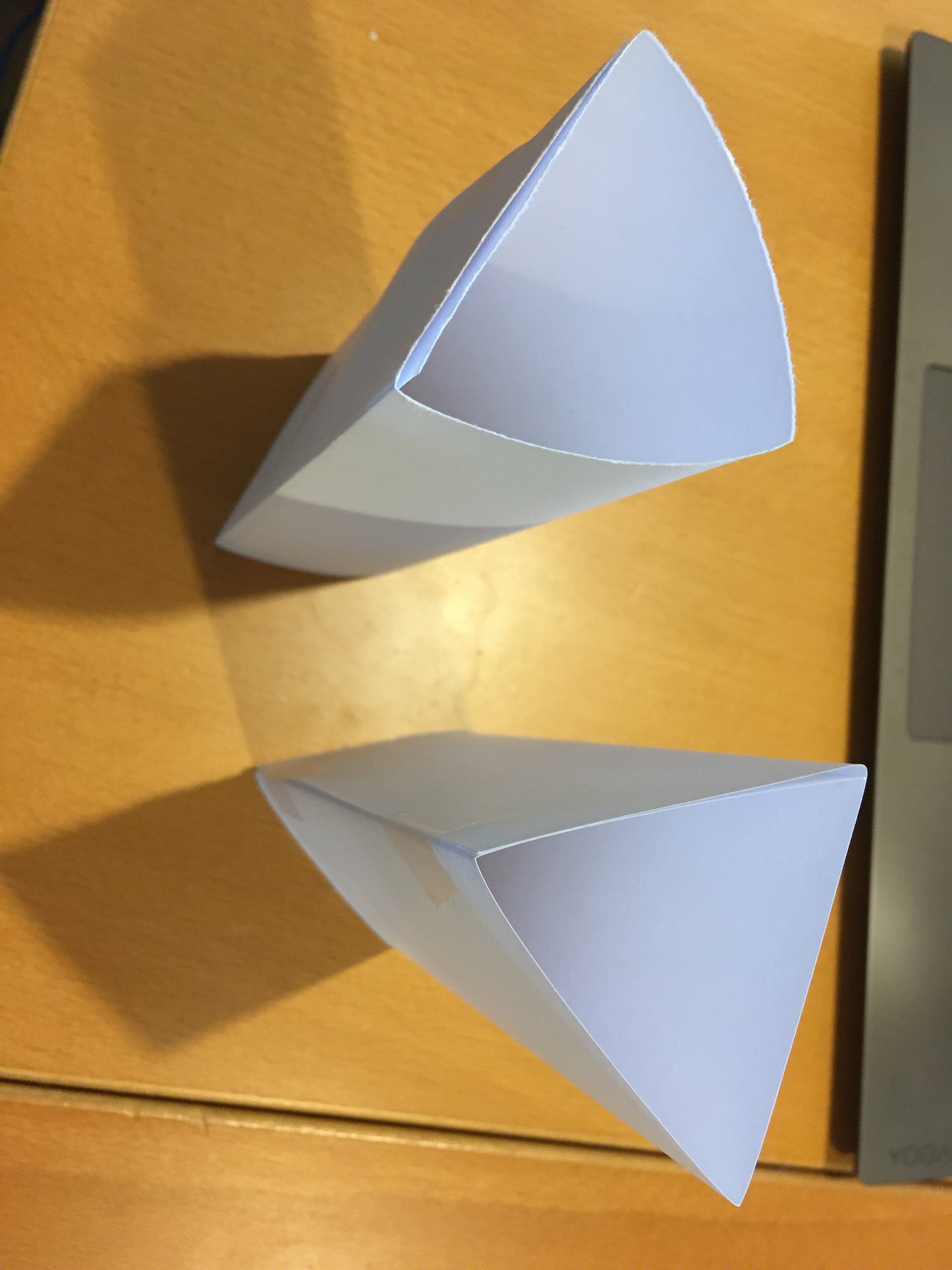 5 & 6 Shape each paper into a triangle by overlapping one of the sides onto another. Tape it closed. (optional)