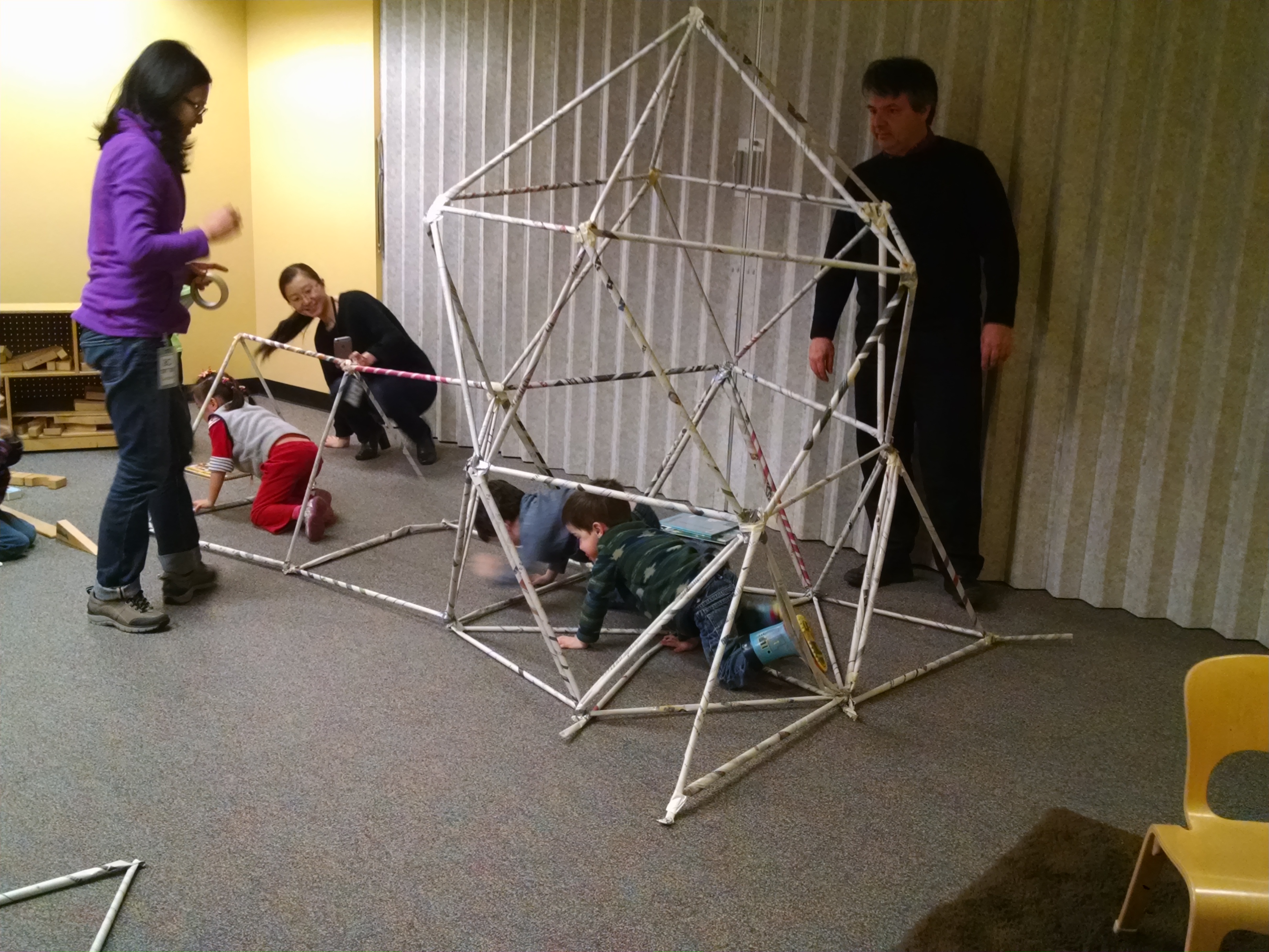 […] imaginative play. We’ve done it with several different sets of supplies: newspaper trusses (learn how to make them), PVC pipes, giant tinker toys, and pop-up tunnels. Plus sheets and tablecloths, and some stuffed […]