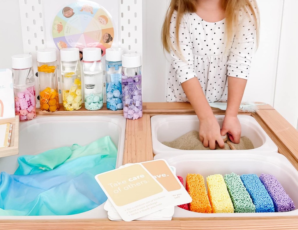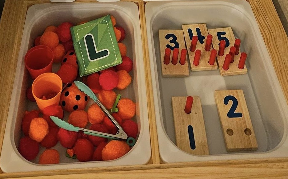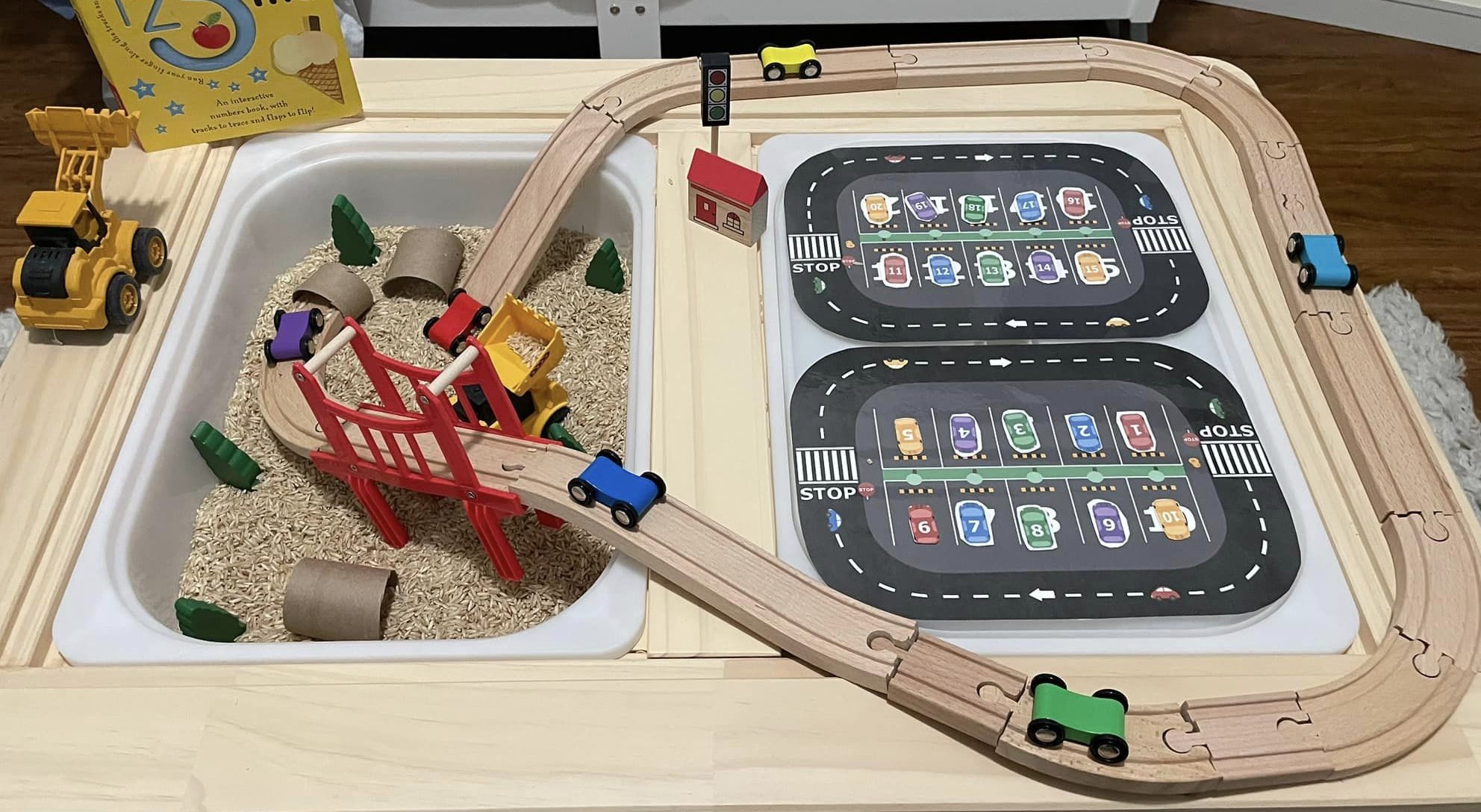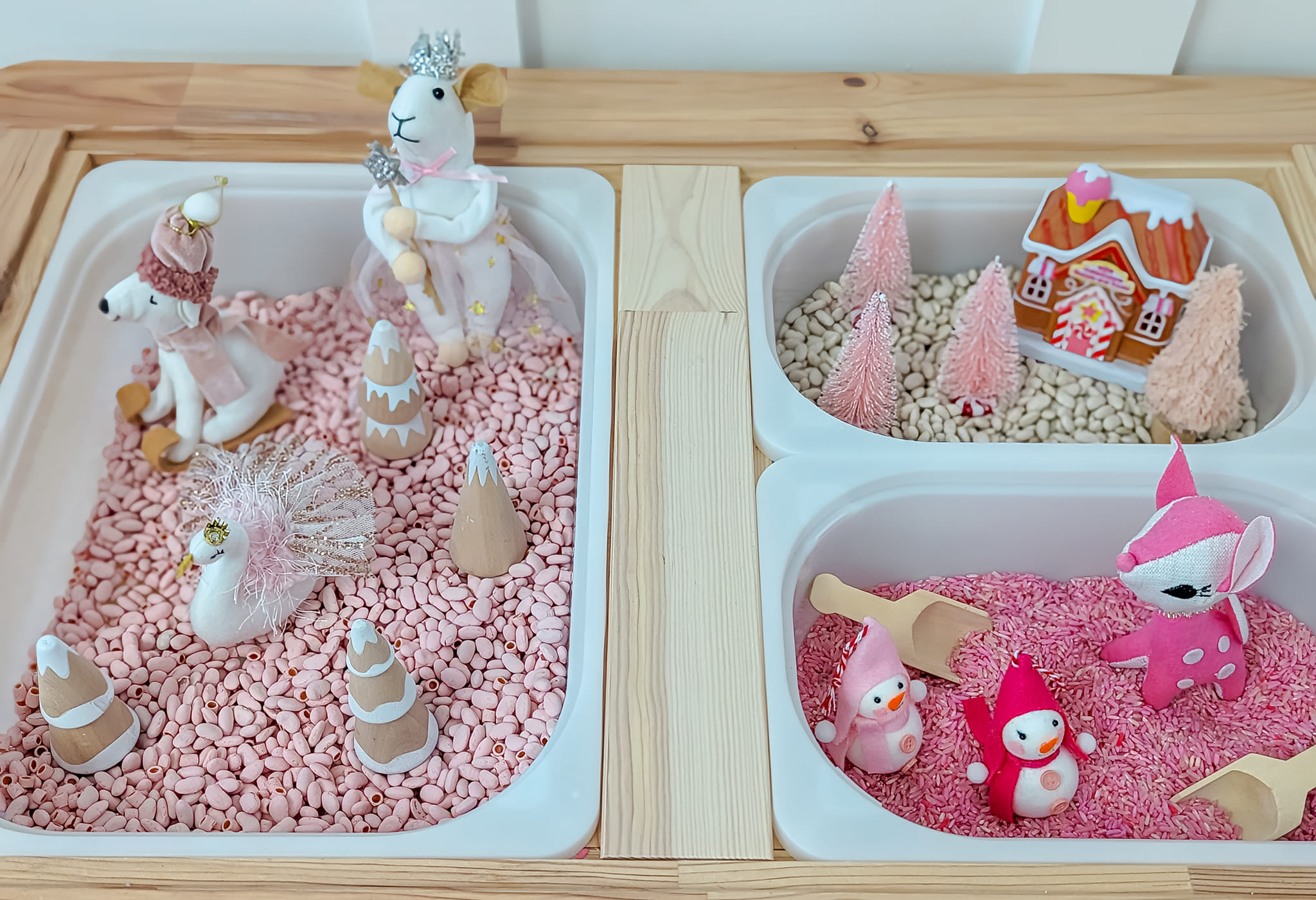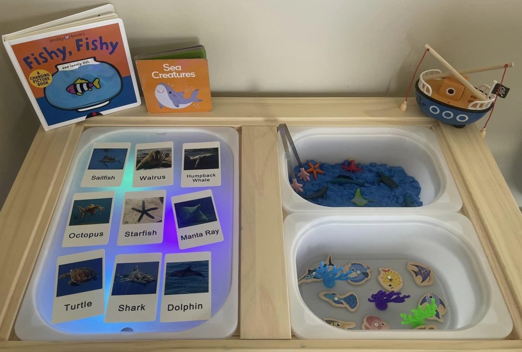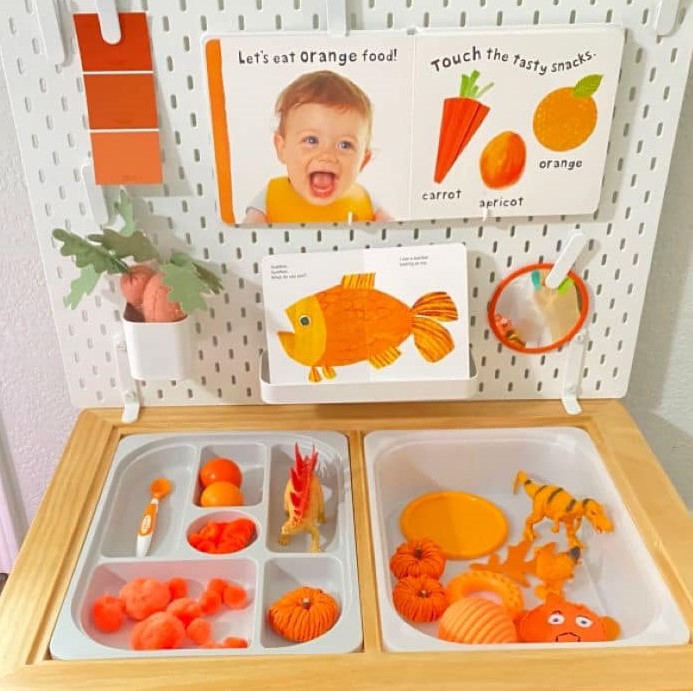 I recently joined a Facebook group called Flisat Table Simple Set-Ups. (The Flisat is a table from IKEA that can combine with Trofast storage bins or trays and some optional hacks to make a sensory bin. But it’s mostly sensory bin ideas that could work in any container.)